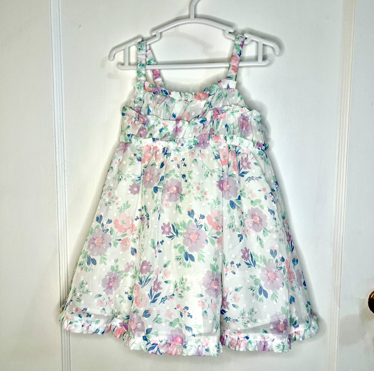 ๐ธ Light floral chiffon dress with ruffled hem and bow back